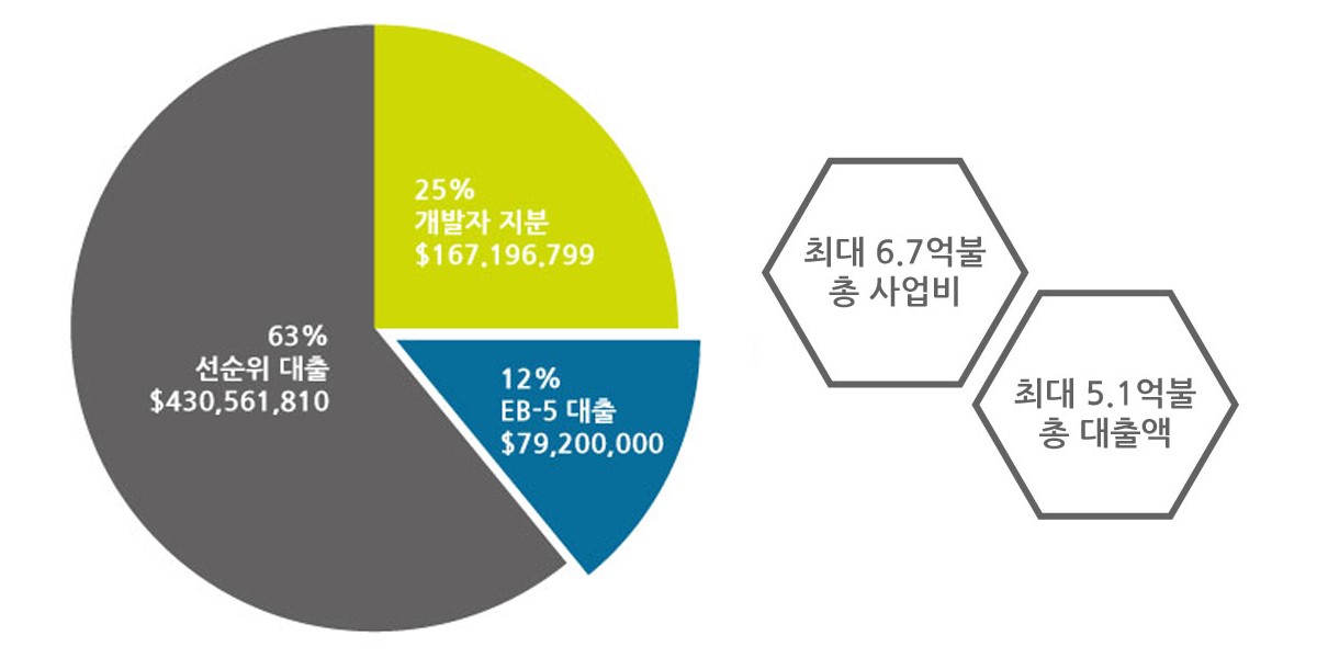 • 프로젝트 개발을 위한 자금은 이미 100% 확보되어 EB5 자금은 홈페드가 제공하는 브릿지 론을 대체하여 사용됨